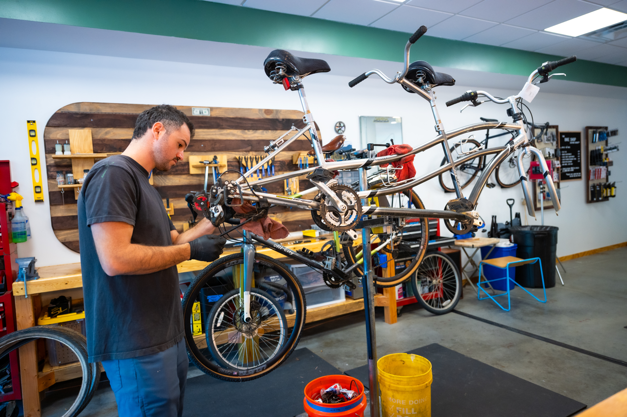 We offer walk-in bike repairs and same-day pickup. From flat tire changes to hydraulic brake bleeds and full tuneups, we’ve got you covered. We do not service integrated cockpits, press-fit bottom brackets, scooters, or e-bike electronics.