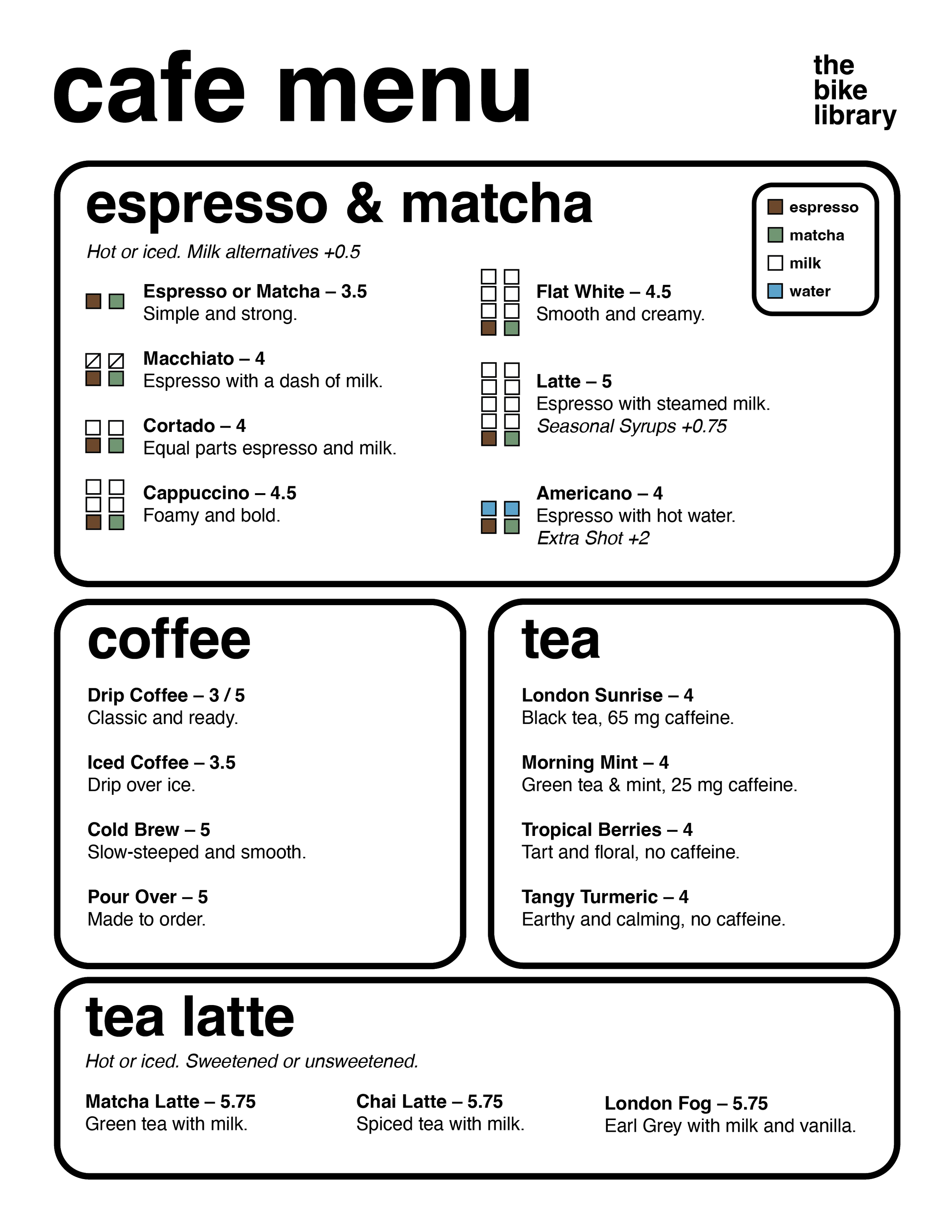 Come grab an espresso, matcha, or any of our locally-made vegan pastries while you work, study, read, or wait for your bike to be fixed. The space is intended to feel lived-in, and we’d love for you to spend time here.